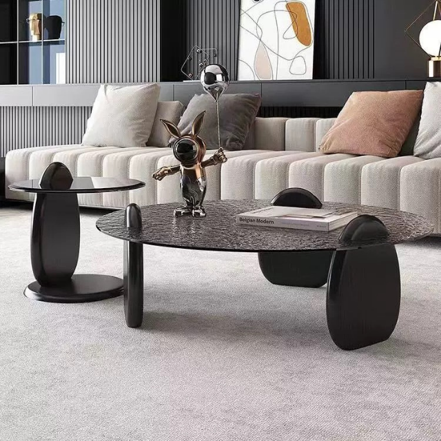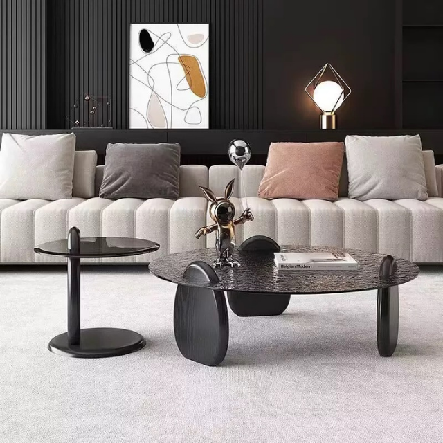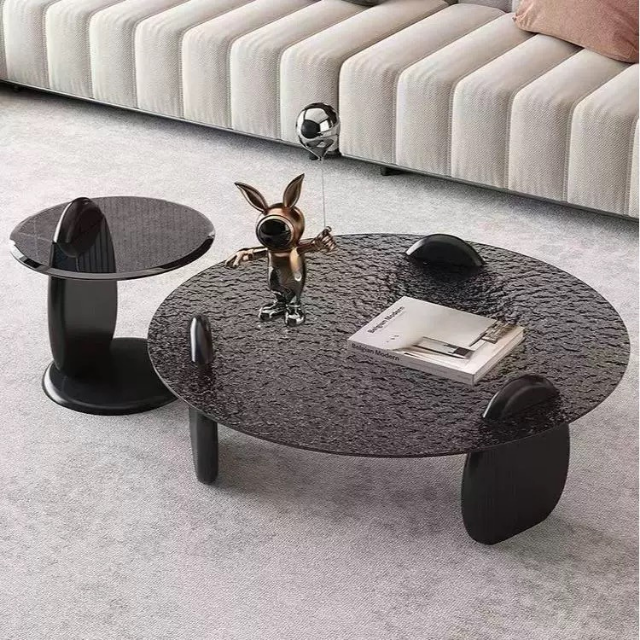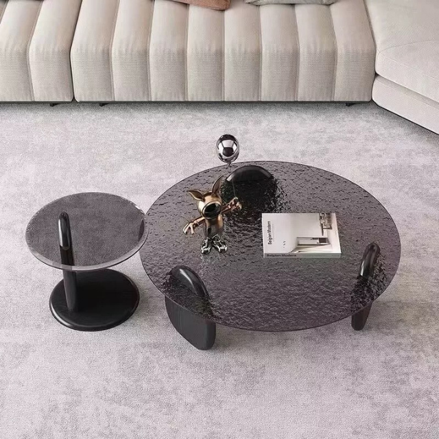 • Large coffee table with water ripple glass top