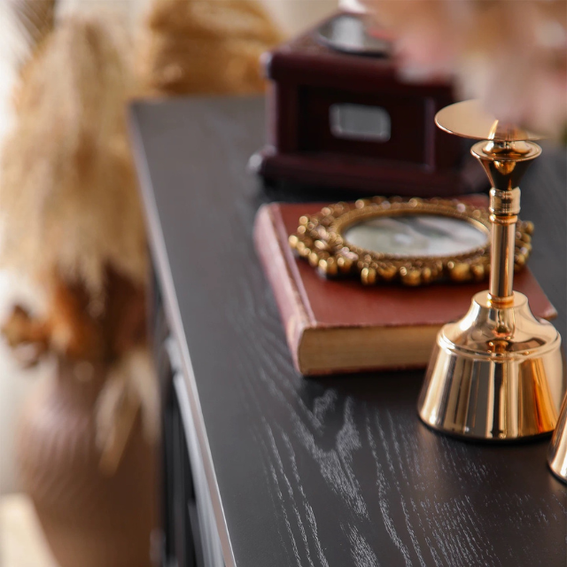 $ 9,888.00Original price was: $ 9,888.00.$ 6,890.00Current price is: $ 6,890.00.Dimensions: 120cm x 40cm x 81cm (WxDxH) Imported rubber wood with pinewood finish Colour as per photo Gold handles
