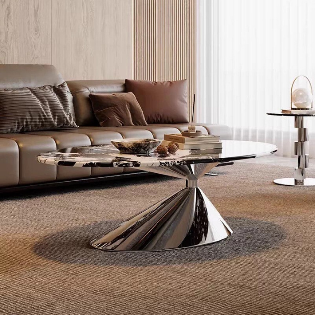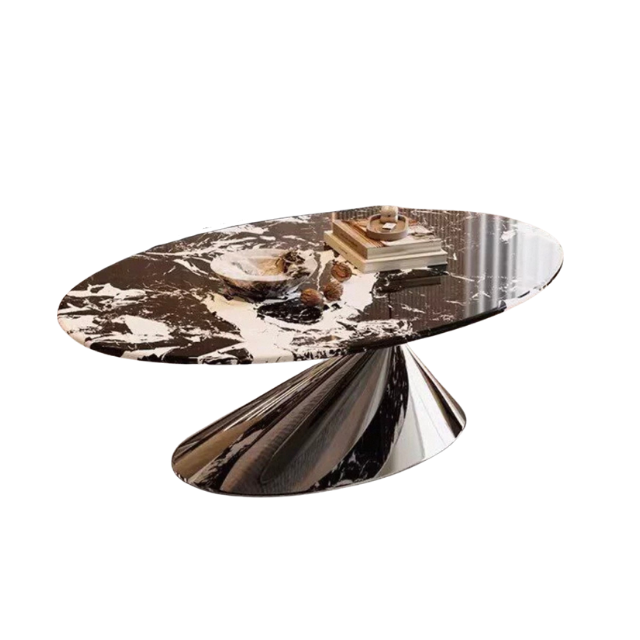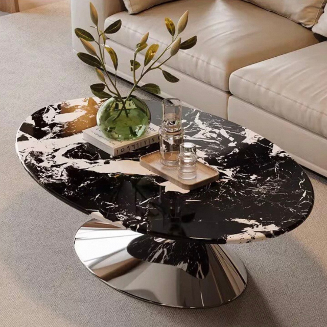 Make the most of limited space with this simple, elegant Mahala Stone Coffee Table. The stainless steel metal frame adds a sleek minimalistic element to the tables and holds the sintered stone tabletop in place. Marble veins on the tabletop further elevate this classy set and allow you to place different items on top as needed.